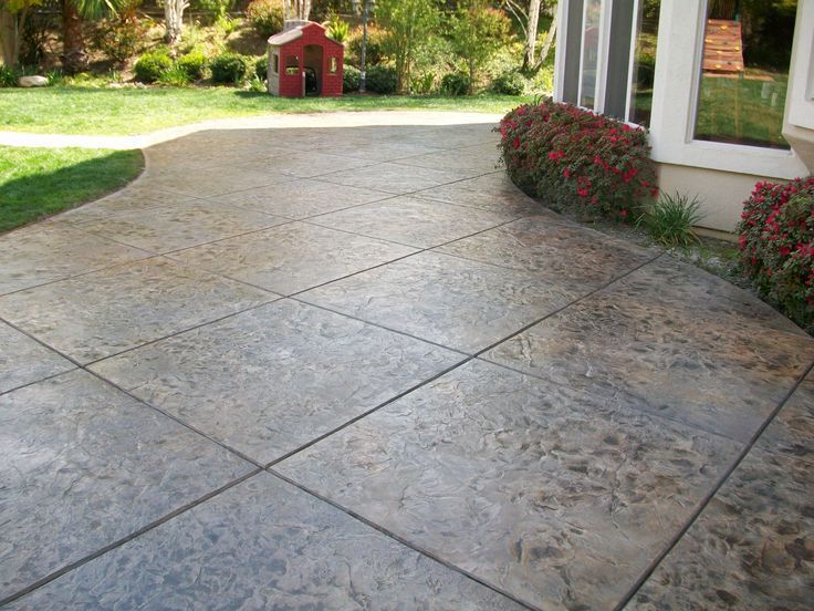 Stamped concrete patios are a very popular type of concrete flatwork design. When the concrete is poured and hardening, stamps are pressed into the slab to create an impression. Colors can be used along with the stamps to create all sorts of designs